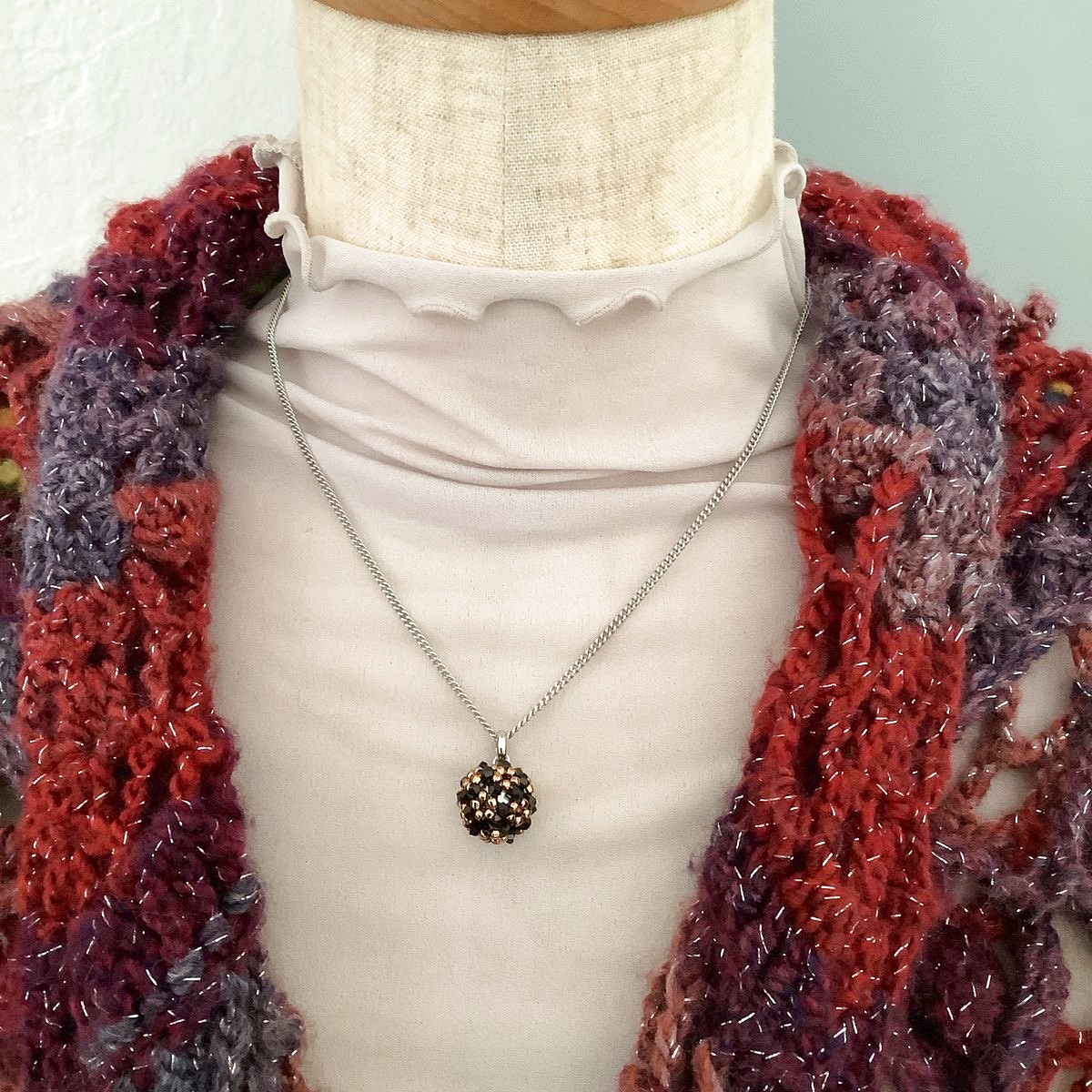 中央にテラヘルツビーズをあしらい、周囲をチェコ製クリスタルで囲んだ、